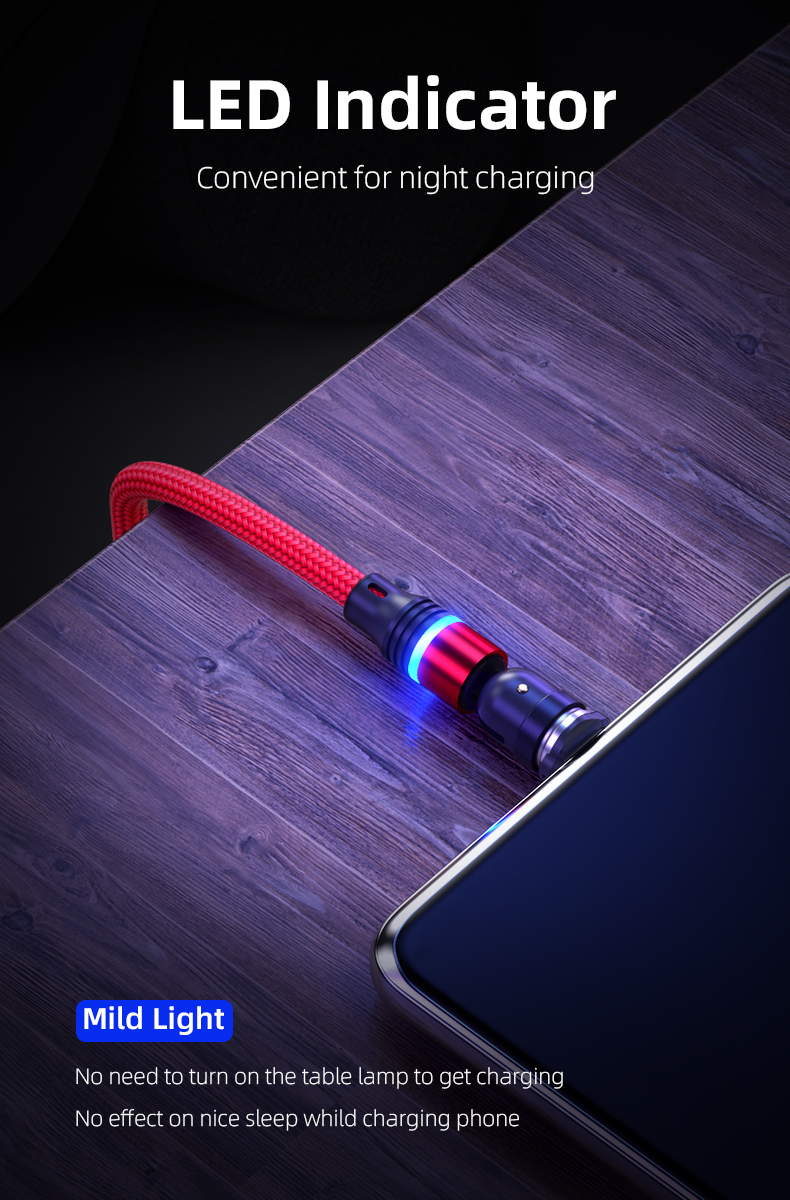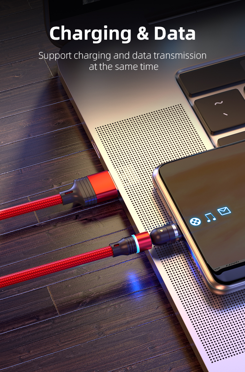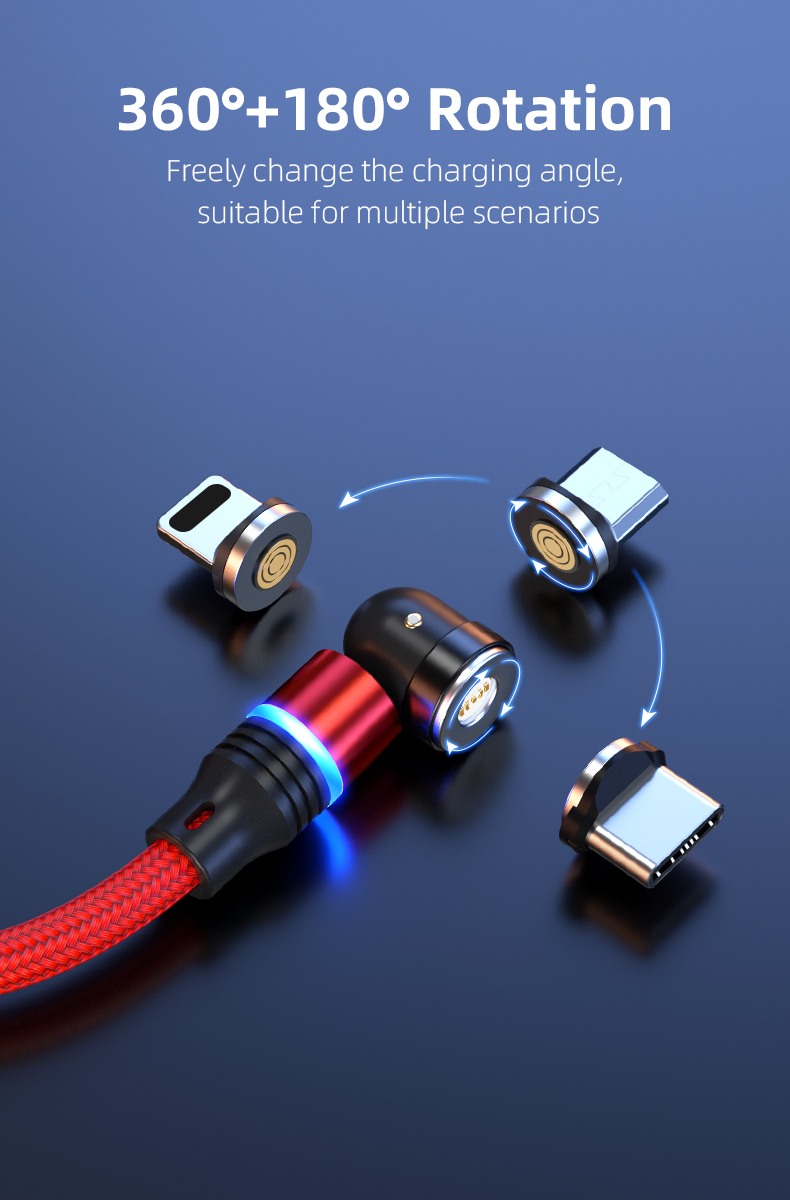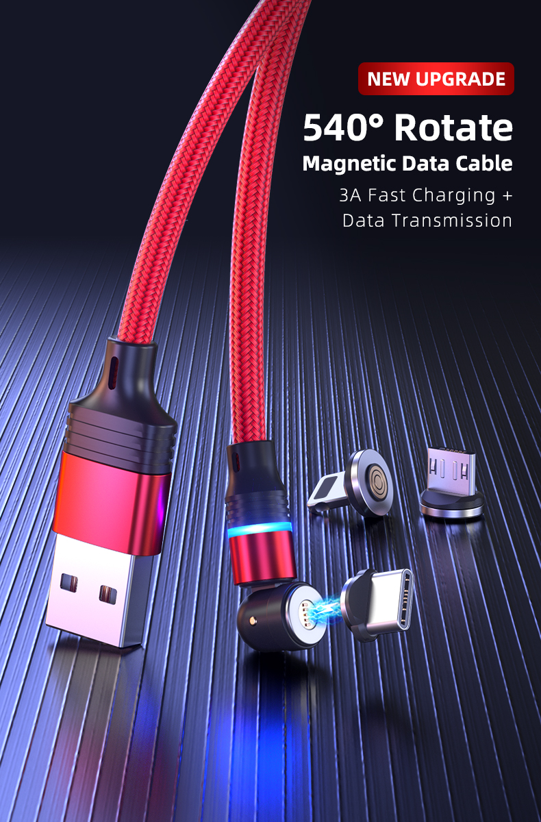 Cablu de incarcare rapida si transfer de date 5 pini,3.5mm, 3A, magnetic, 3 in 1 Lightning, Type-C , micro-USB,Led Circular, rotatie 540 grade