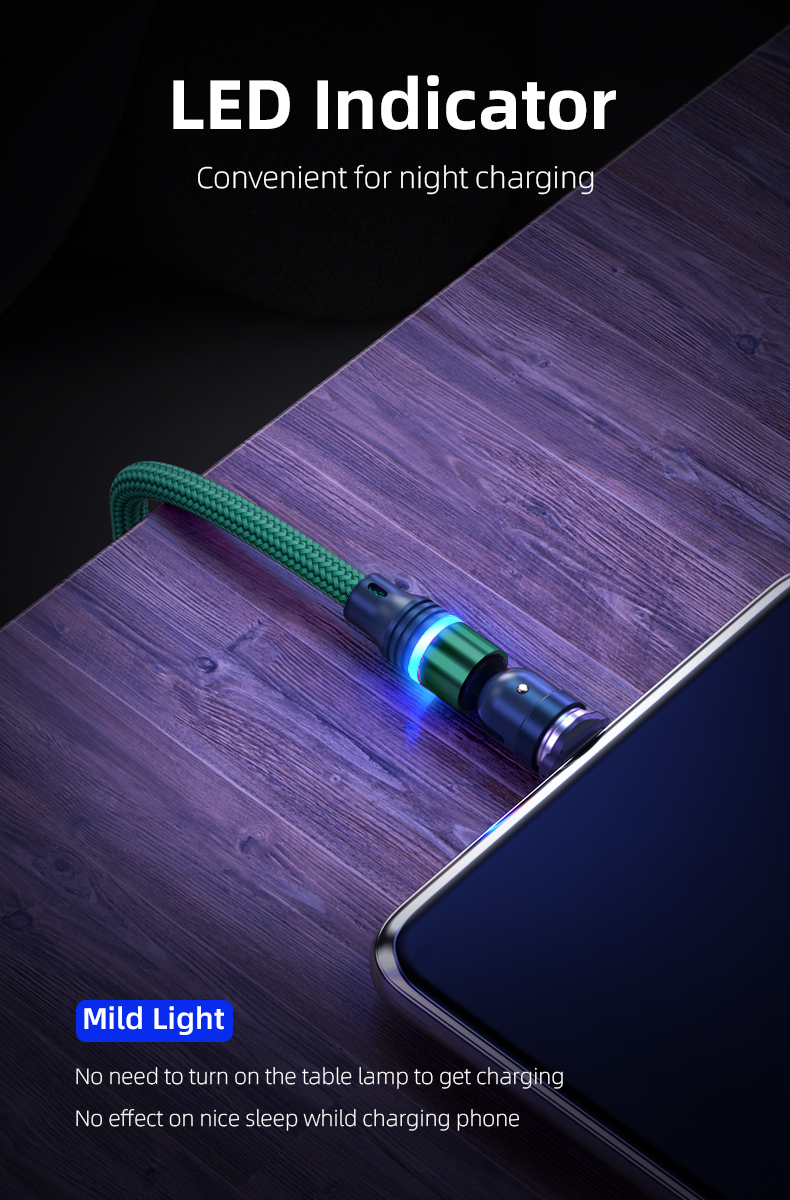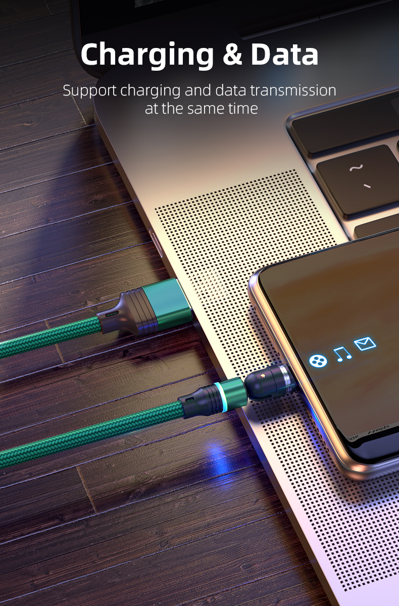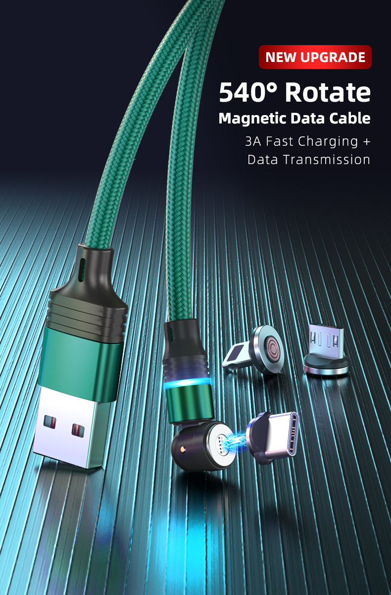 Cablu de incarcare rapida si transfer de date 3A magnetic RiKbo® 3 in 1 Lightning, Type-C , micro-USB rotatie 540 grade, Compatibil Iphone Samsung Huawei Oppo Xiaomi, Verde