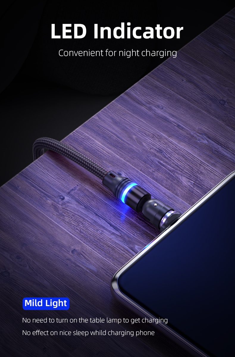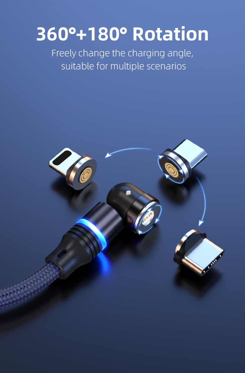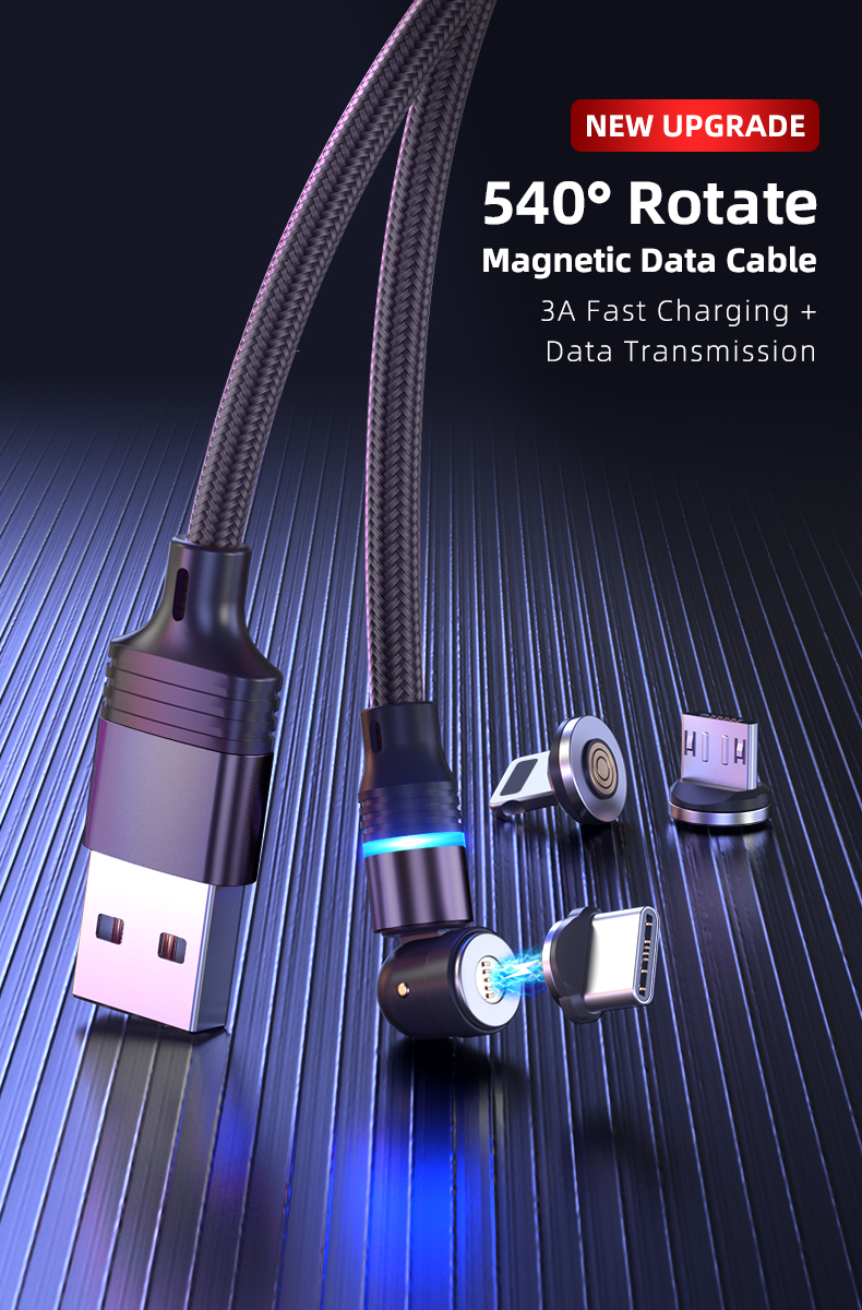 Cablu de incarcare rapida si transfer de date 5 pini,3.5mm, 3A, magnetic, 3 in 1 Lightning, Type-C , micro-USB,Led Circular, rotatie 540 grade