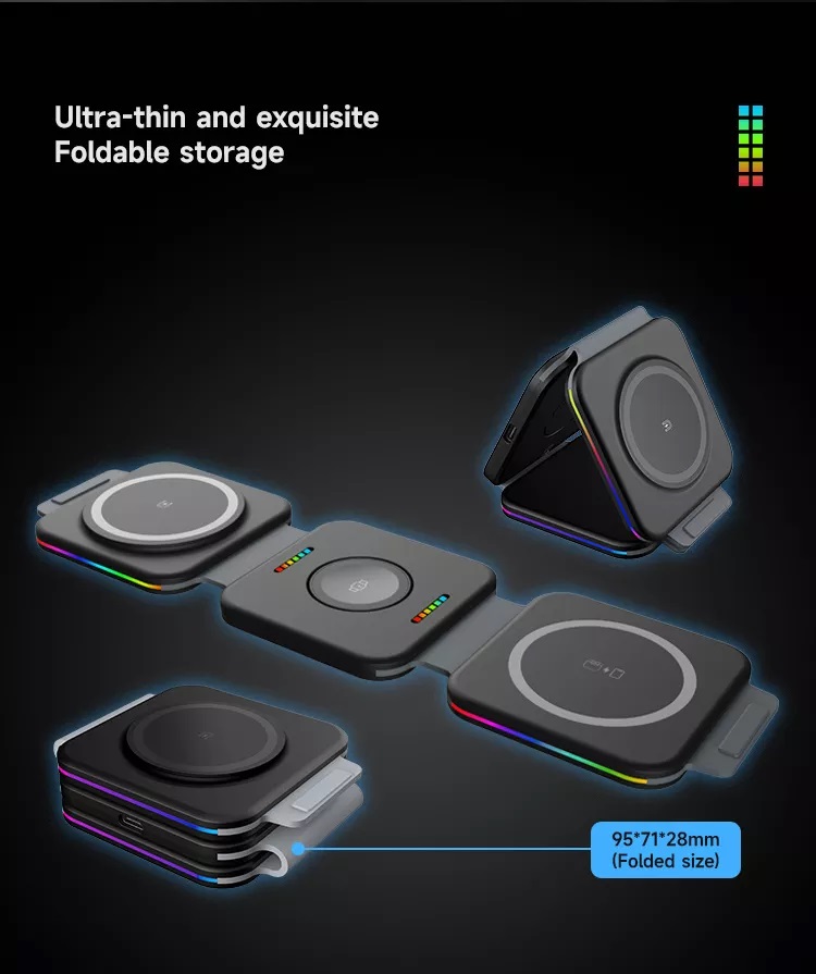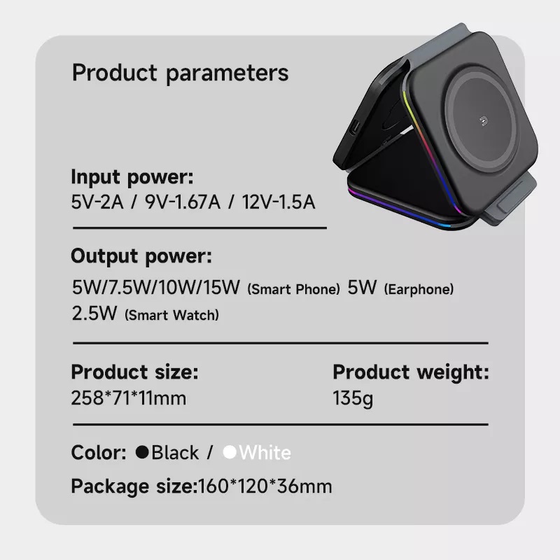 Incarca simultan FastCharge (15W) orice telefon mobil care dispune de functia de incarcare Wireless QI ( Iphone, Samsung, Huawei, Oppo, Xiaomi ), castile Airpods/Galaxy Buds/Casti cu incarcare wireless, TWS (5W) si DOAR ceasul smart Apple Watch fiind accesoriul ideal pentru o mai buna organizare a spatiului de pe biroul/noptiera dumneavoastra.